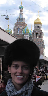 Esta postagem é em homenagem à Yeyé, que sempre diz ser inadmissível vir à Rússia e não colocar o típico gorro (ushanka) na cabeça. Ainda não comprei o meu, porque achei que ficou meio estranho para mim. Mas não poderia deixar de provar um ushanka na feirinha de artesanato só para fazer essa foto e dar uma aquecidinha nos miolos...